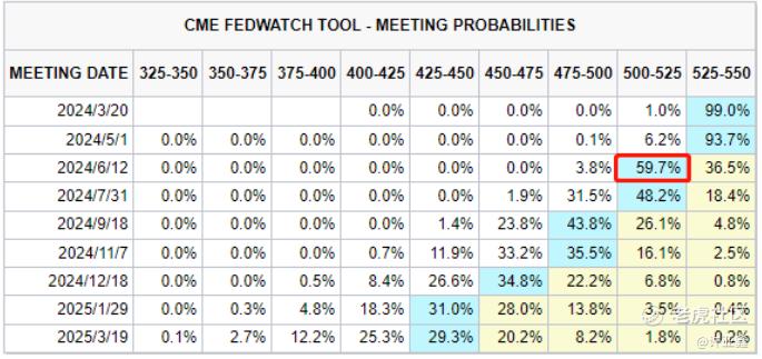 According to CME group FedWatch tool, traders in the federal funds futures market predicted that the probability of FOMC cutting interest rates in June was 59.7%, compared with 58.2% before PPI data was released.