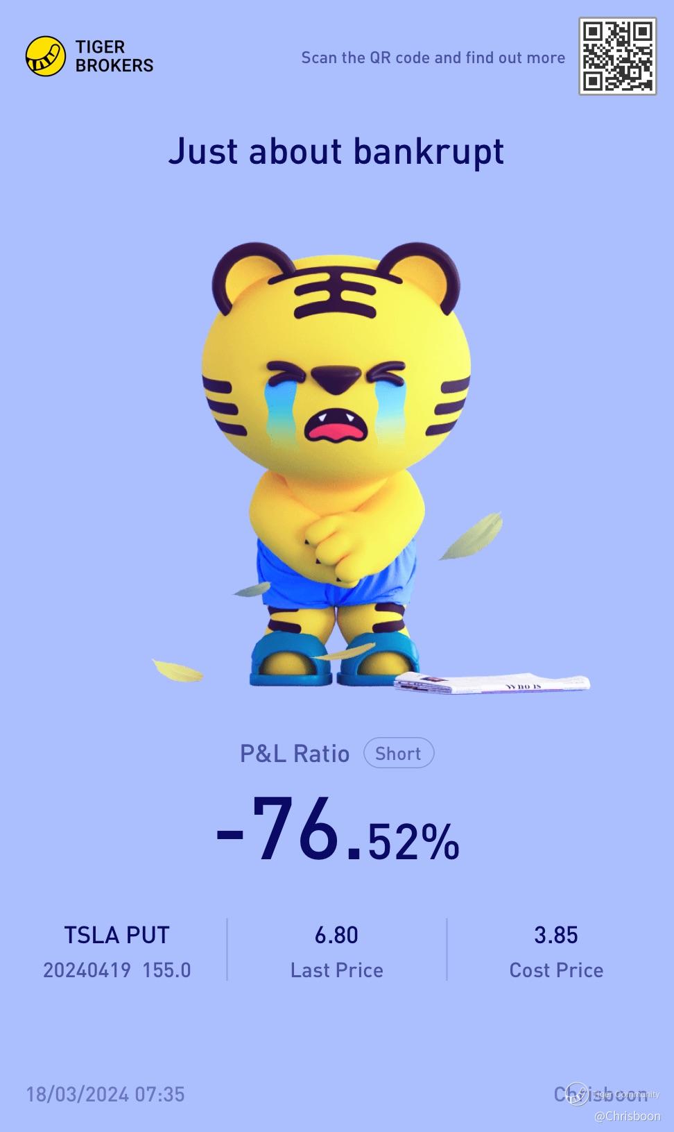 $TSLA 20240419 155.0 PUT$ Oh no!!!