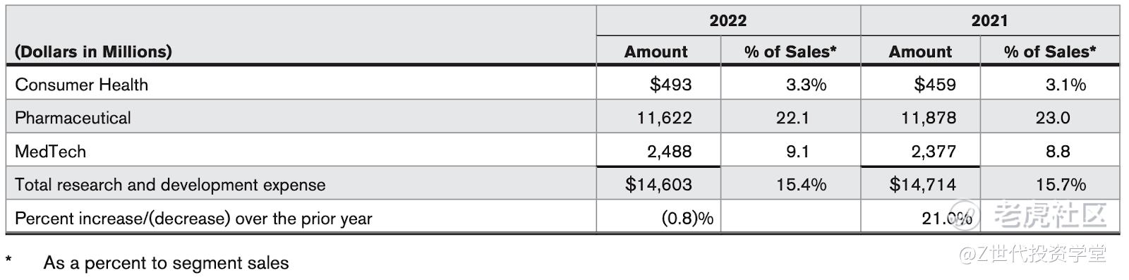 The company also dedicates a significant portion of its business in its research and development activities. These expenditures relate to the processes of discovering, testing and developing new products, upfront payments and developmental milestones, improving existing products, as well as ensuring product efficacy and regulatory compliance prior to launch. From 2021 to 2022, research and development decreased as a percent to sales primarily driven by lower milestone payments in the pharmaceutical segment.