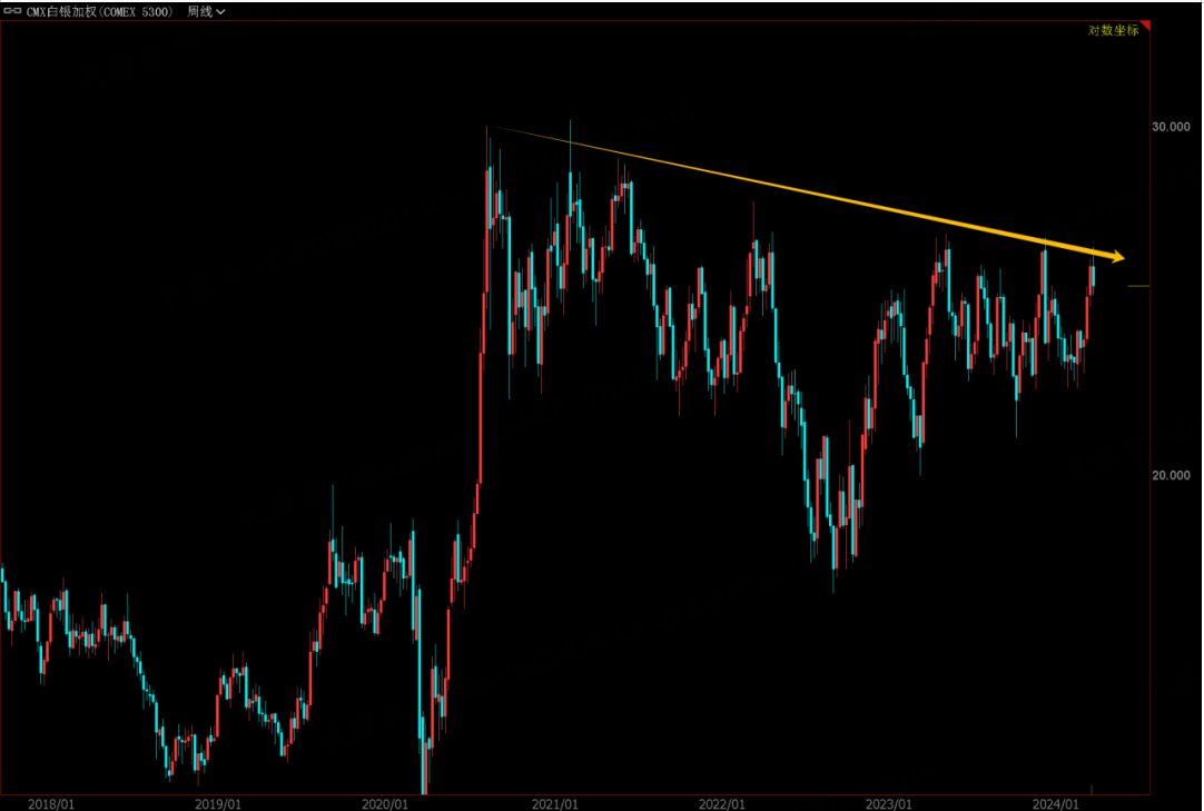 At present, the silver price just meets the adjustment after the long-term trend line. If the subsequent breakthrough occurs, the adjustment here may take 2-3 months. Although silver fluctuates slightly, it is better speculative than gold, so everyone pays attention to it.