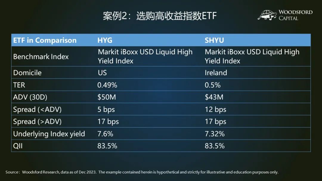 還是以新加坡投資者爲例,他想購買一個美元高息債ETF。爲了簡化案例,我們假設他有兩個選項:HYG和SHYU。兩者的主要區別在於:HYG的註冊地在美國,而SHYU的註冊地在愛爾蘭。其他的基金股息和流動性方面也有所差別,但不是很大。