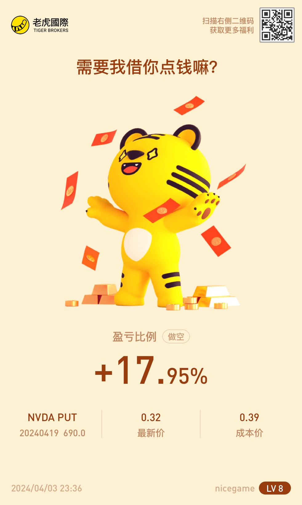 Share your positions with us! This is a column where you can find the winning trades of our fellow tigers. There probably are a few potential opportunities that you may have overlooked.