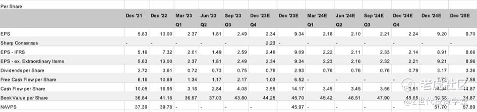 Lastly, we can analyze TotalEnergies’ share performance and expected performance. As per its forecasted EPS, figures are expected to grow at a rate of 8.70x in 2025, compared to a 5.83x rate in 2021. Similarly, the company’s dividends per share are also expected to increase, reaching 3.36x (vs 2.72x in 2021). As per cash flow per share, it is forecasted to grow by a 4.82-point basis, reaching 14.87x in 2025 compared to 2021. Lastly, the most notable increase relates to the book value per share. Indeed, the book value per share of a company indicates the performance of its stock relative to its market value. As TotalEnergies’ book value is expected to increase (54.87 in 2025 vs 36.64 in 2021), the stock is expected to be perceived as more valuable.