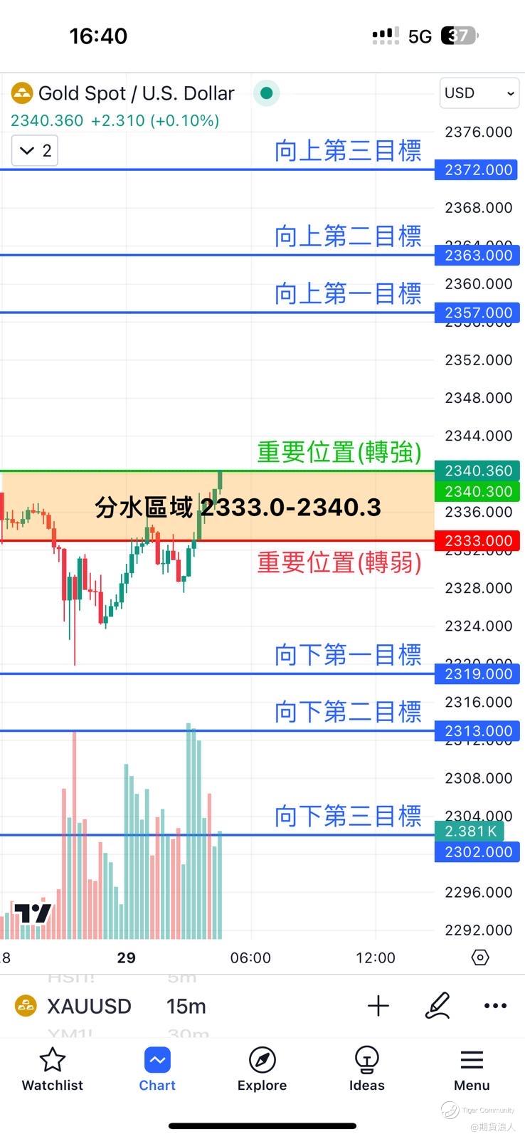 黃金上星期出現回吐,下試左2290水平,但未有失守,重上返2350左右。暫時進入大型橫行,短線唔失守2333水平的話,先睇反,目標2250左右阻力之上。