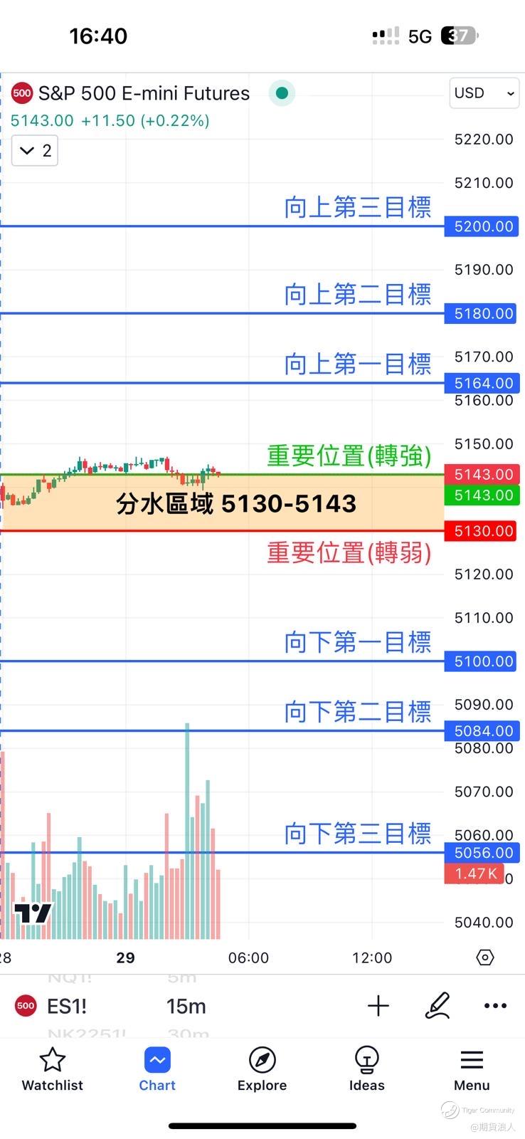 向下目標 5100/5084/5056$小SP指數主連 2403(ESmain)$