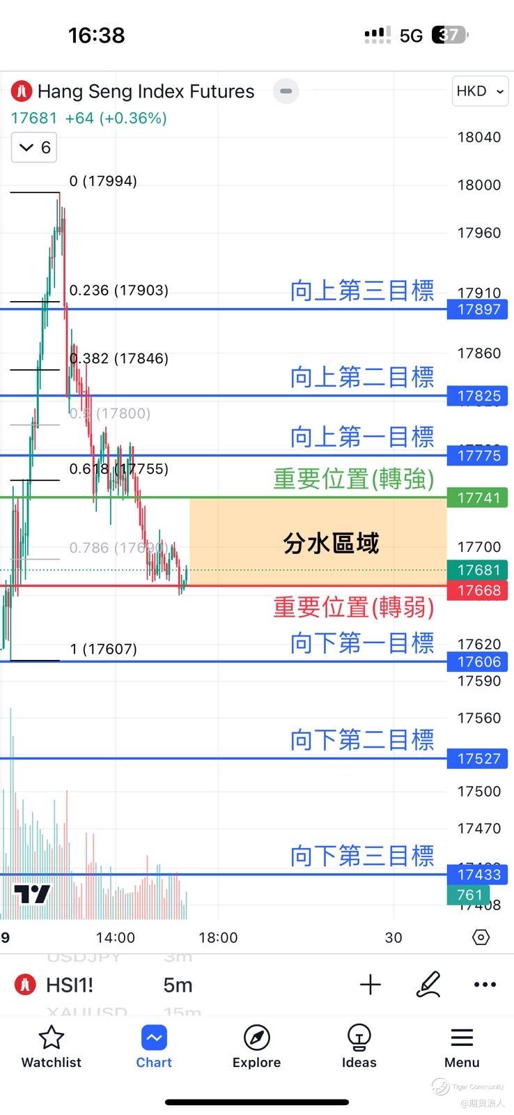 港股持續做好,今日成功如我地週末分析所講,挑戰18000點關口,從低位16000水平,已經反彈2000點,可惜未能維持至收市,收市升幅收窄,回落去176水平。暫時今日嘅走勢有機會令港期先進入回吐,下試175水平支持。