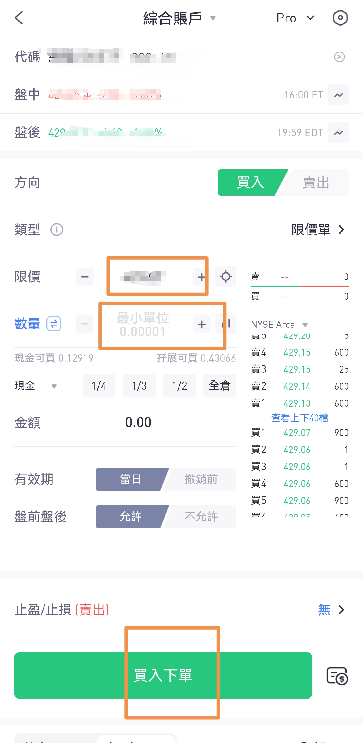 C.輸入你想申購的價格和數量,點擊“買入下單”就可以了。