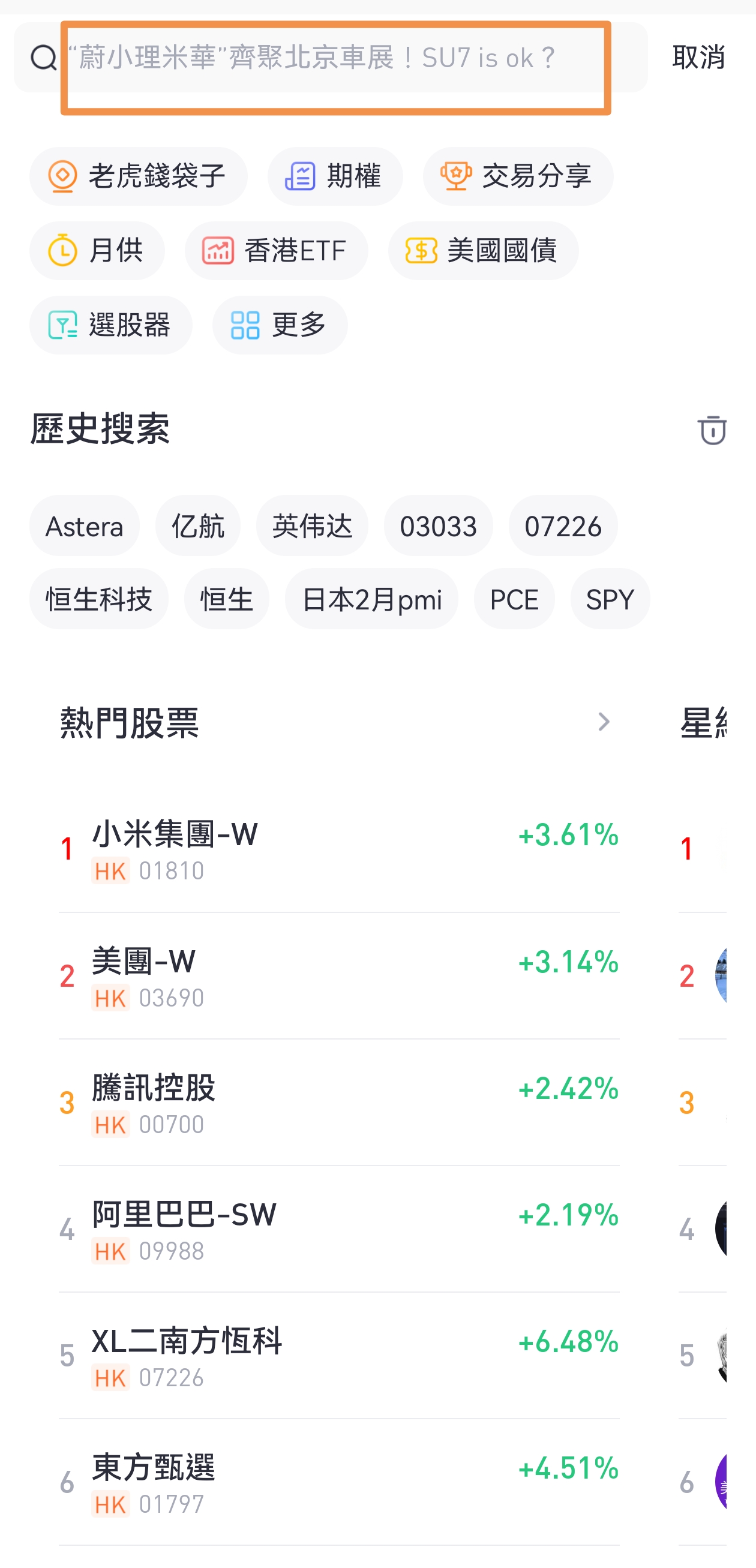 A.打開Tiger trade app,點擊左下方“首頁”,點擊右上方“搜尋”符號。