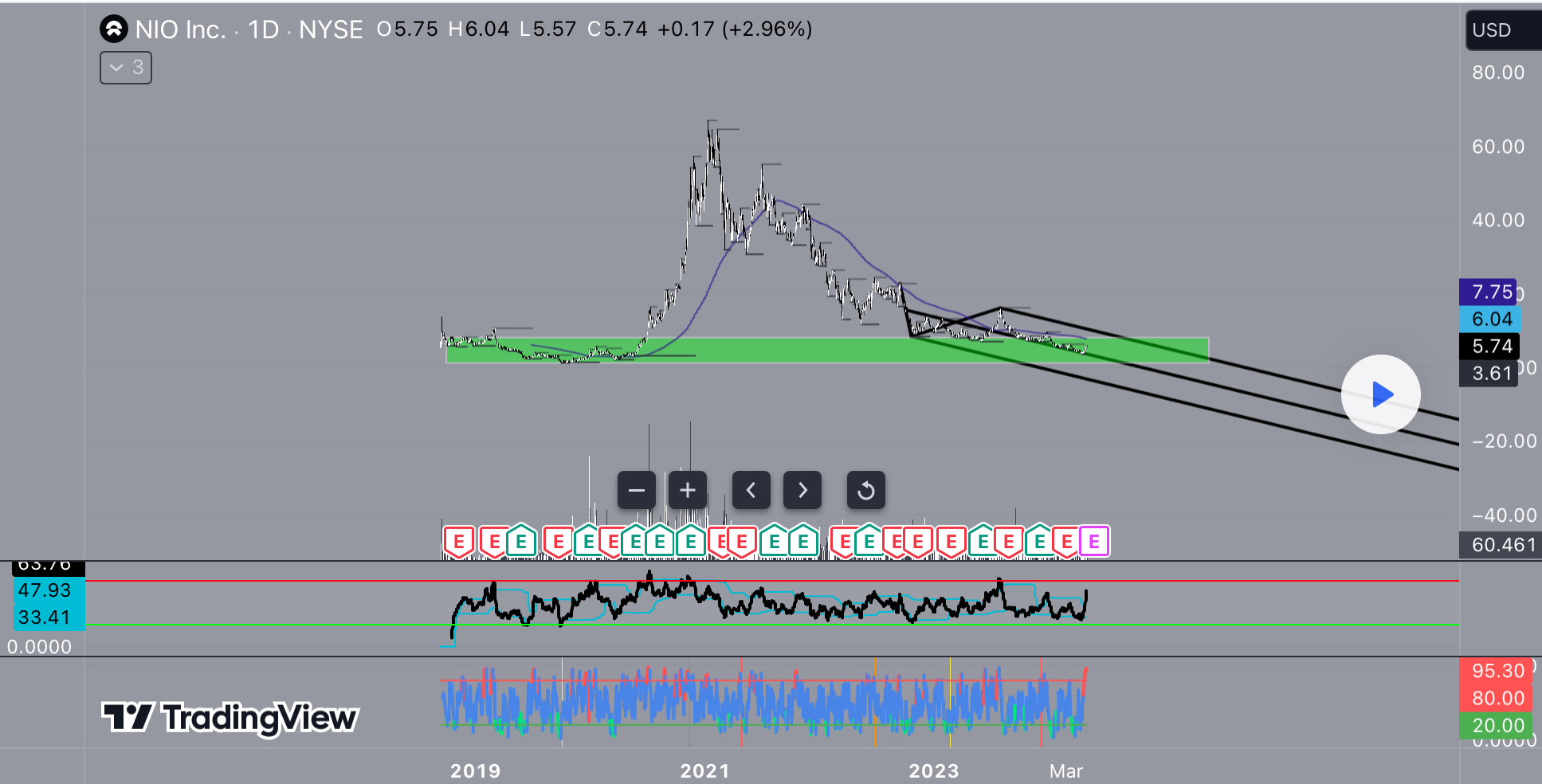 $NIO Inc.(NIO)$ Charts like this are very simple. Accumulate in the green zone consistently. Soon volume will spike and price will explode. I think the explosion will come sooner rather than later as it seems this last down move could be the potential final wash out. Either way, there will come a day when price leaves the green zone and heads towards ATH and possibly beyond. Patience will be rewarded.