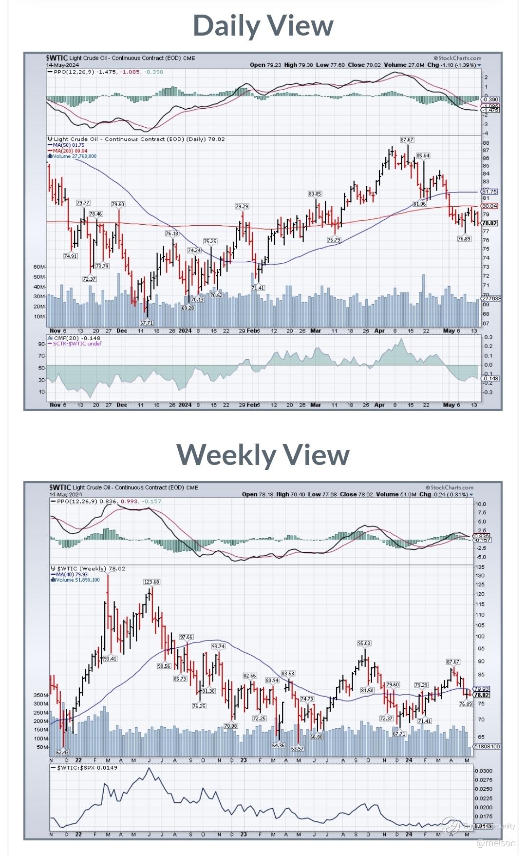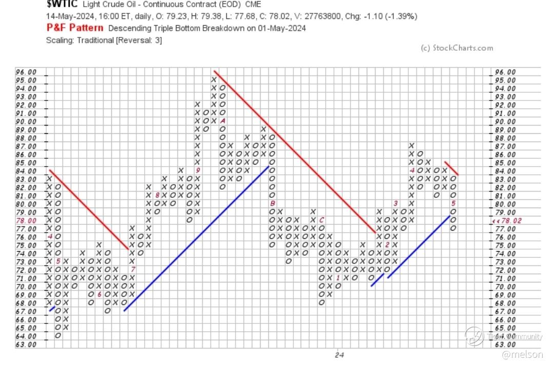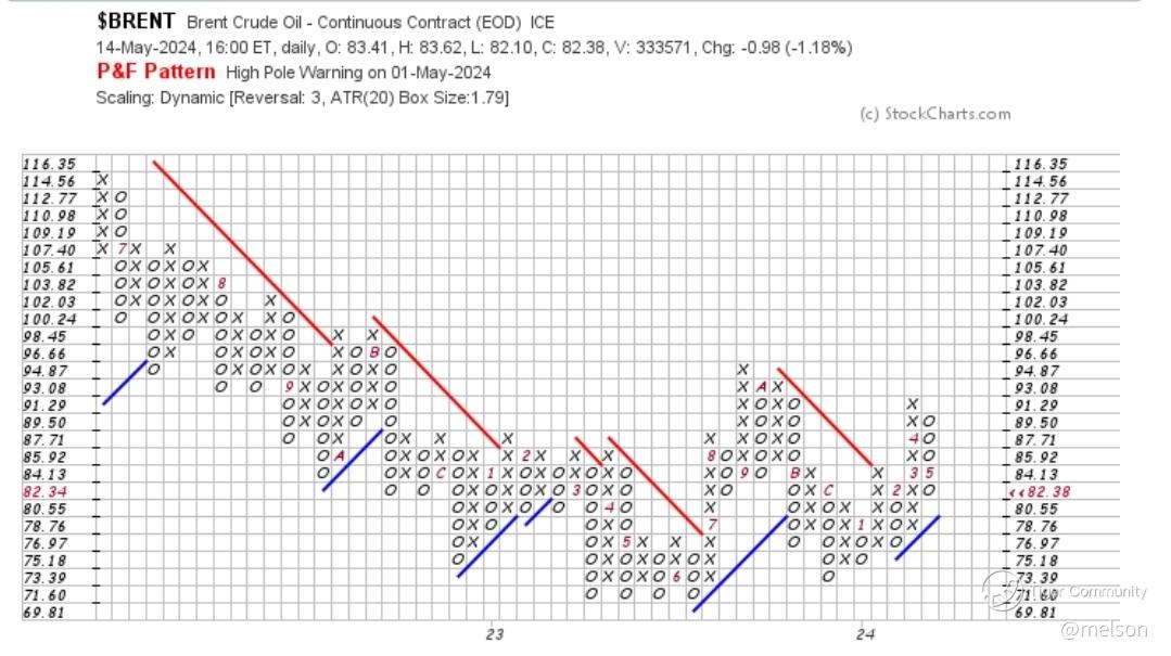 $Brent Last Day Financial - main 2407(BZmain)$ $WTI Crude Oil - main 2406(CLmain)$ pnf shows they are at support zones. candlestick chart of wtic shows that the daily candlesticks fell below the 200 day moving average. however, the 50 day moving average has yet to cross below the 200 day moving average. if there is a crossover, that would be bearish for oil.