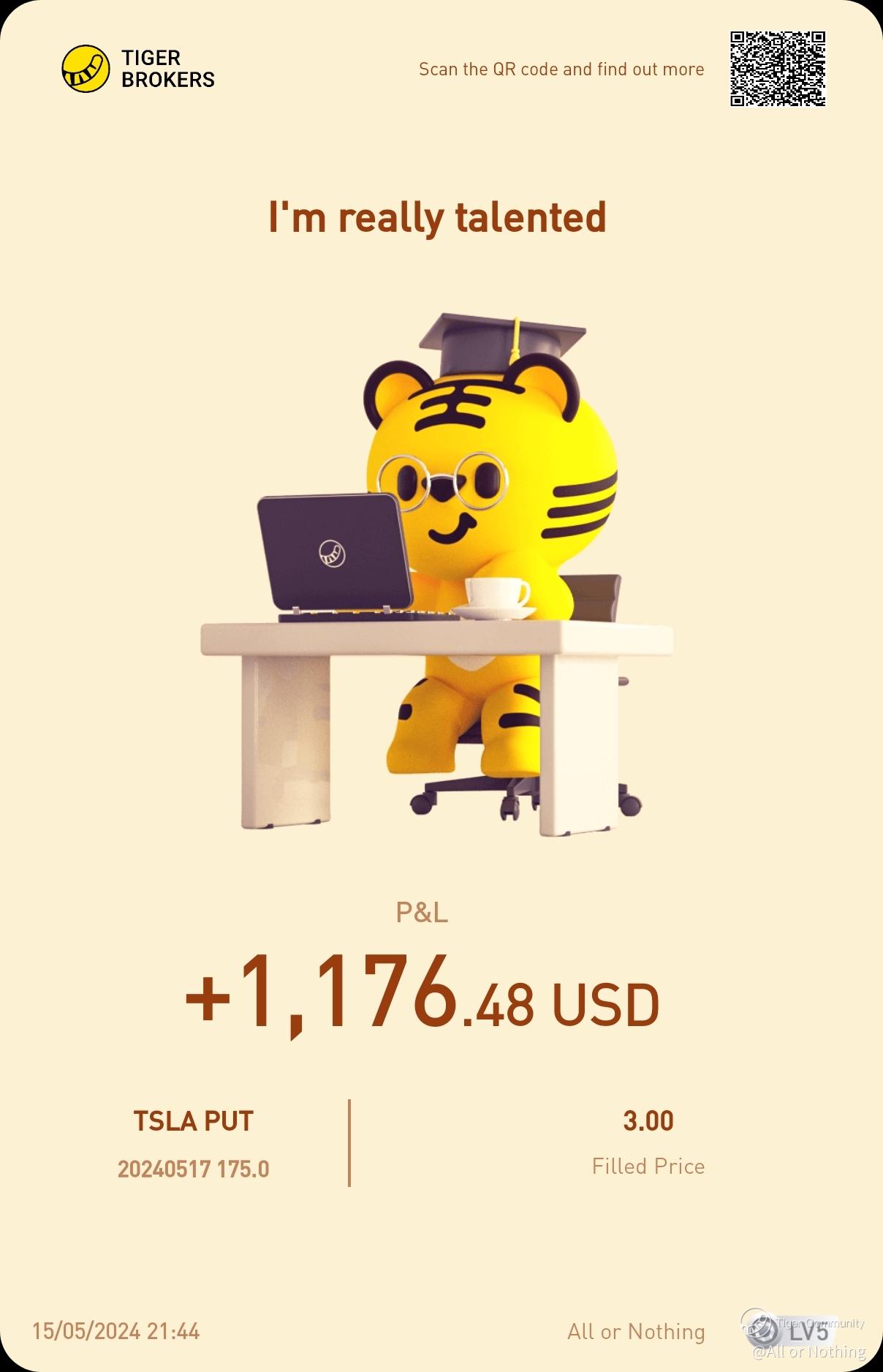 $TSLA 20240517 175.0 PUT$ Early profit today🤑