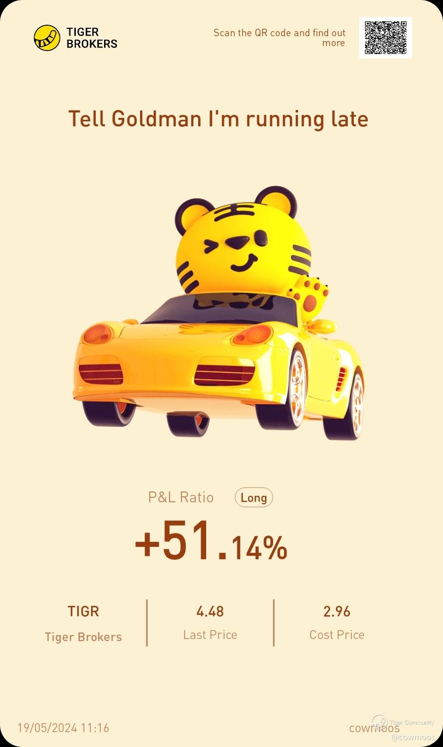 $Tiger Brokers(TIGR)$ Go Tiger. Keep hanging there it will get better!