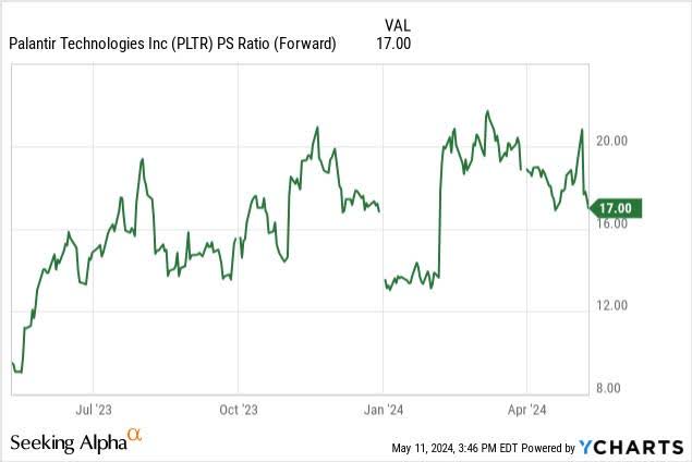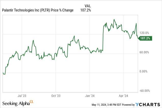 One of the first things you'll notice is that Palantir has generally been upward over the past year, and as you can see on the graph in the introduction, it's, in fact, up over 100% YoY. The stock price has then dropped more than 25% from its March peak of $27.50, and the pullback is likely due to profit-taking, particularly after Palantir's strong earnings in Q4 2023.