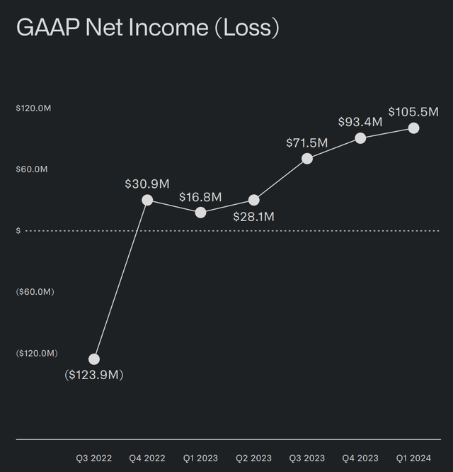 In addition, there is more good news from Palantir this quarter. They've crossed the $100M mark in net income, posting a $12.1M increase from Q4 2023. While the percentage growth in net income has slowed, Palantir is still effectively expanding its bottom line. We're quite optimistic about their financial future and expect to see even stronger performance in the upcoming quarters. It wouldn't be a stretch to predict that Palantir might even outdo themselves throughout the rest of 2024.