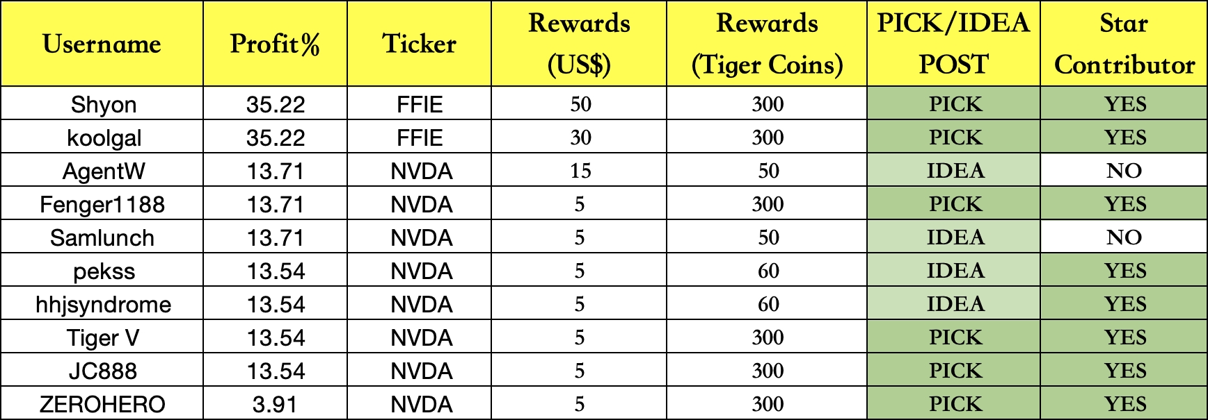 Congratulations to the following Tiger Friends for winning free voucher rewards @Shyon @koolgal @AgentW @Fenger1188 @Samlunch @pekss @hhjsyndrome @Tiger V @JC888 @ZEROHERO ! And let's specially congratulate the Tigers who are βStar Contributorsβ For winning additional coins.