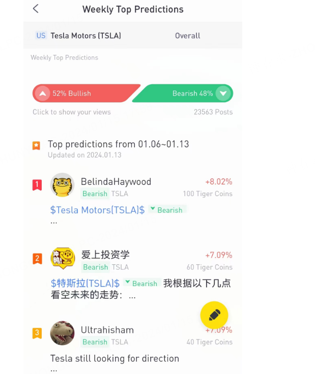 Feeling excited after seeing these results? Want to know more about these users' opinions? π You can find the [Tiger Prediction] feature by entering the [Discussions] section on any of the available stocks and check it out! We welcome everyone to share their own insights and be the next user on the list!