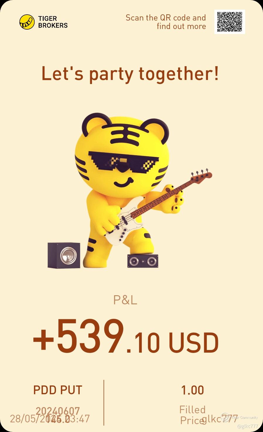 $PDD 20240607 145.0 PUT$ decided to take profit within 1hr after entering the trade instead of waiting for expiry in June call.