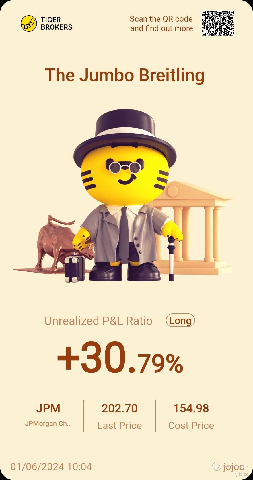 $JPMorgan Chase(JPM)$ My position in JP Morgan up about 30%, Huat Ah!!