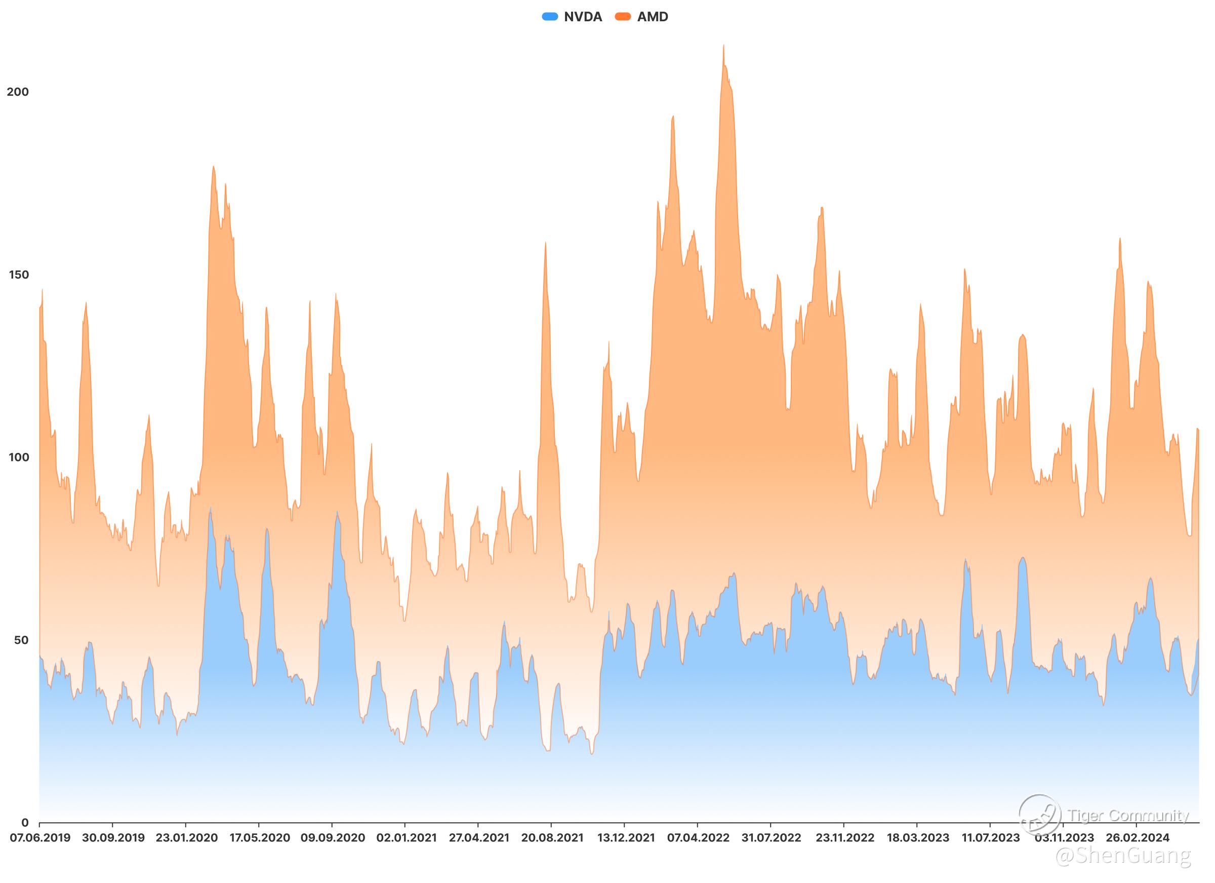 Across 2023 till the present, the 15-day average daily traded volume of AMD is 34% higher than NVIDIA's.