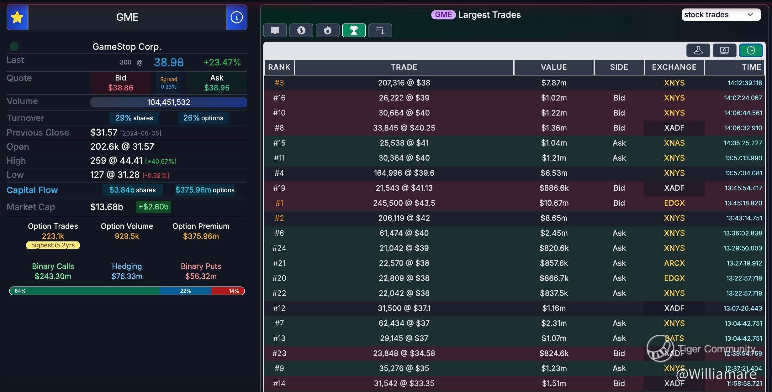 GME ended the session lower by 12.1%, as the company’s rescheduled shareholder event wrapped up with no detailed remarks about its strategies.