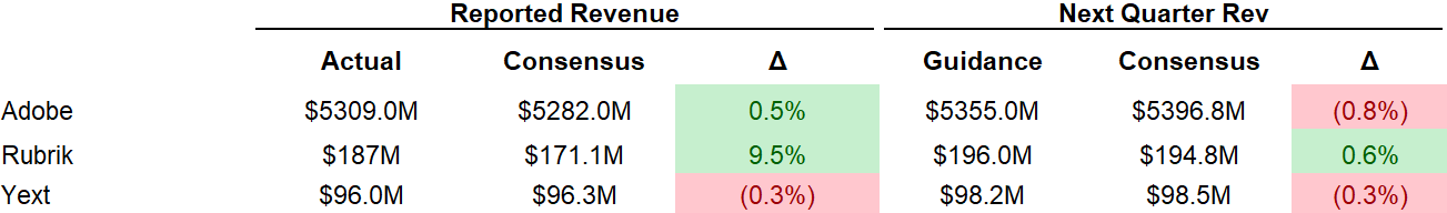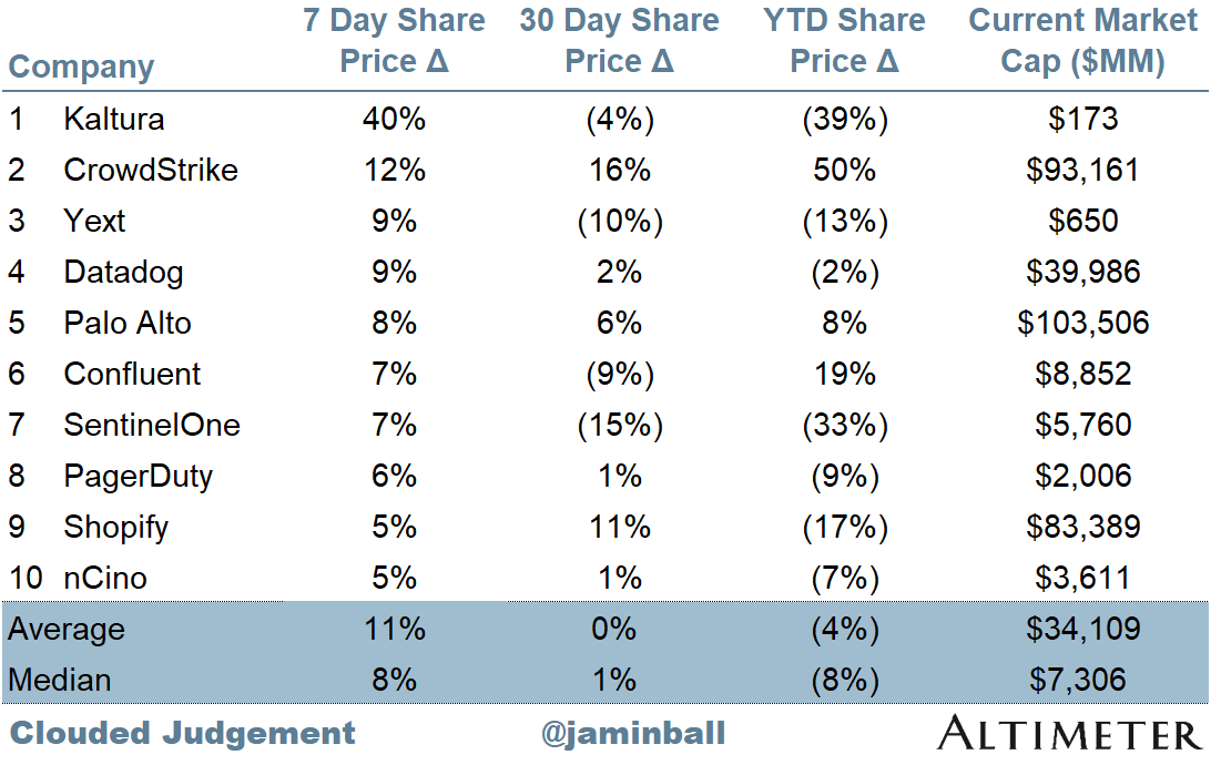 Bucketed by Growth. In the buckets below I consider high growth >27% projected NTM growth (I had to update this, as there’s only 1 company projected to grow >30% after this quarter’s earnings), mid growth 15%-27% and low growth <15%