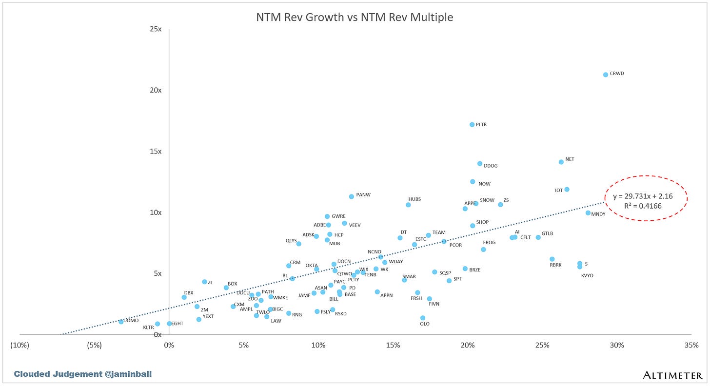 Scatter Plot of EV / NTM Rev Multiple vs NTM Rev Growth