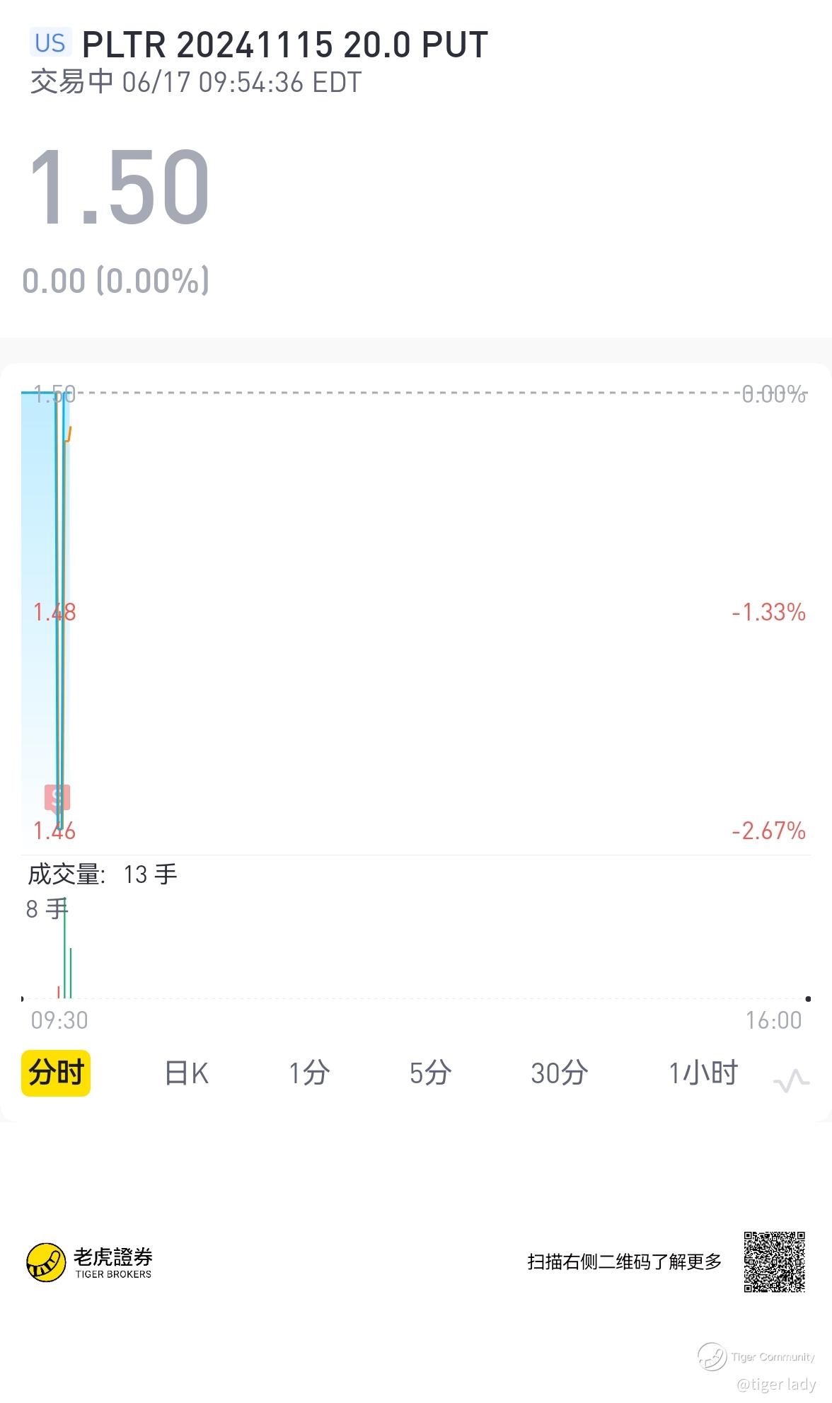 my first Trade $PLTR 20241115 20.0 PUT$