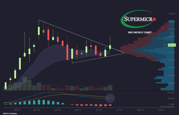 $SUPER MICRO COMPUTER INC(SMCI)$ Not the prettiest weekly candle, but held for the wedge breakout. 📈