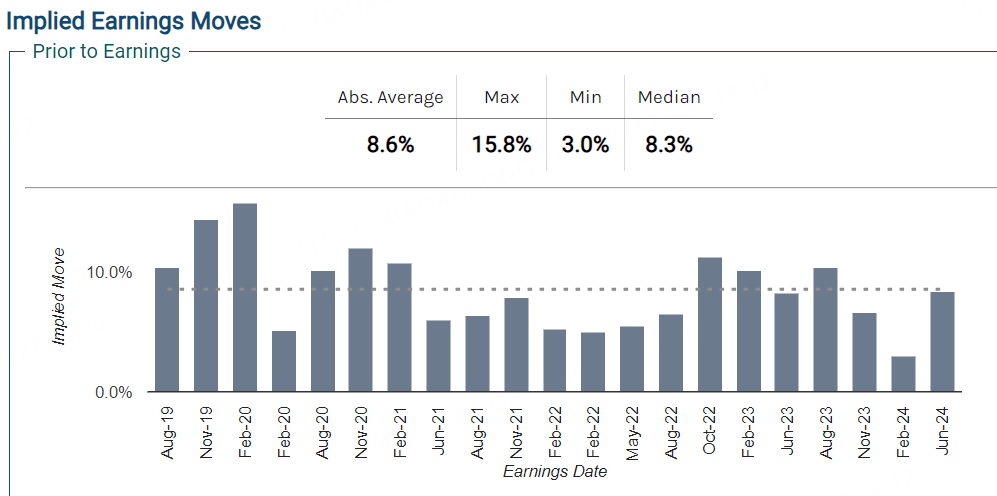 The options prices predicted a ±8.3% post earnings move, compared to a +19.3% actual move. The options market overestimated ATEX stocks earnings move 69% of the time in the last 13 quarters. The predicted move after earnings announcement was ±7.3% on average vs an average of the actual earnings moves of 6.7% (in absolute terms).