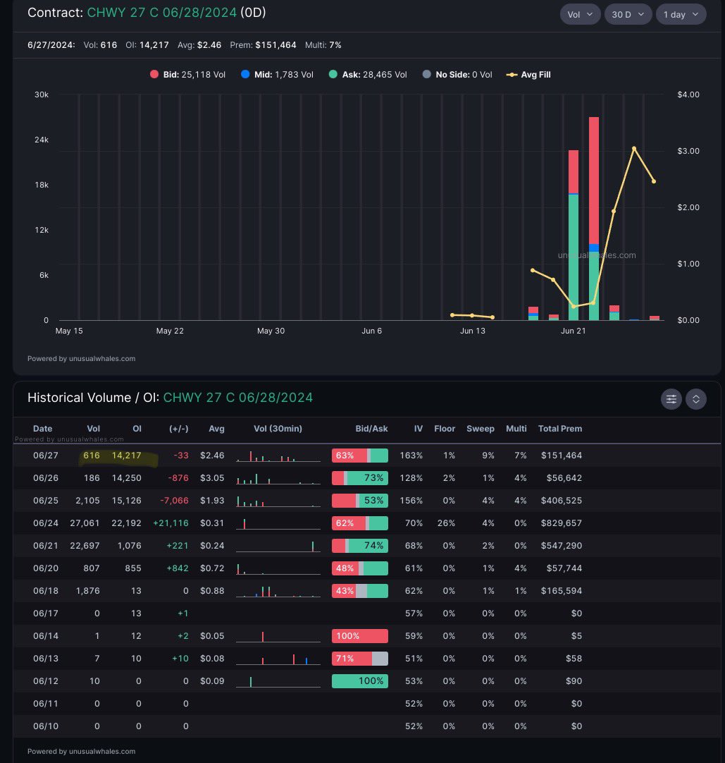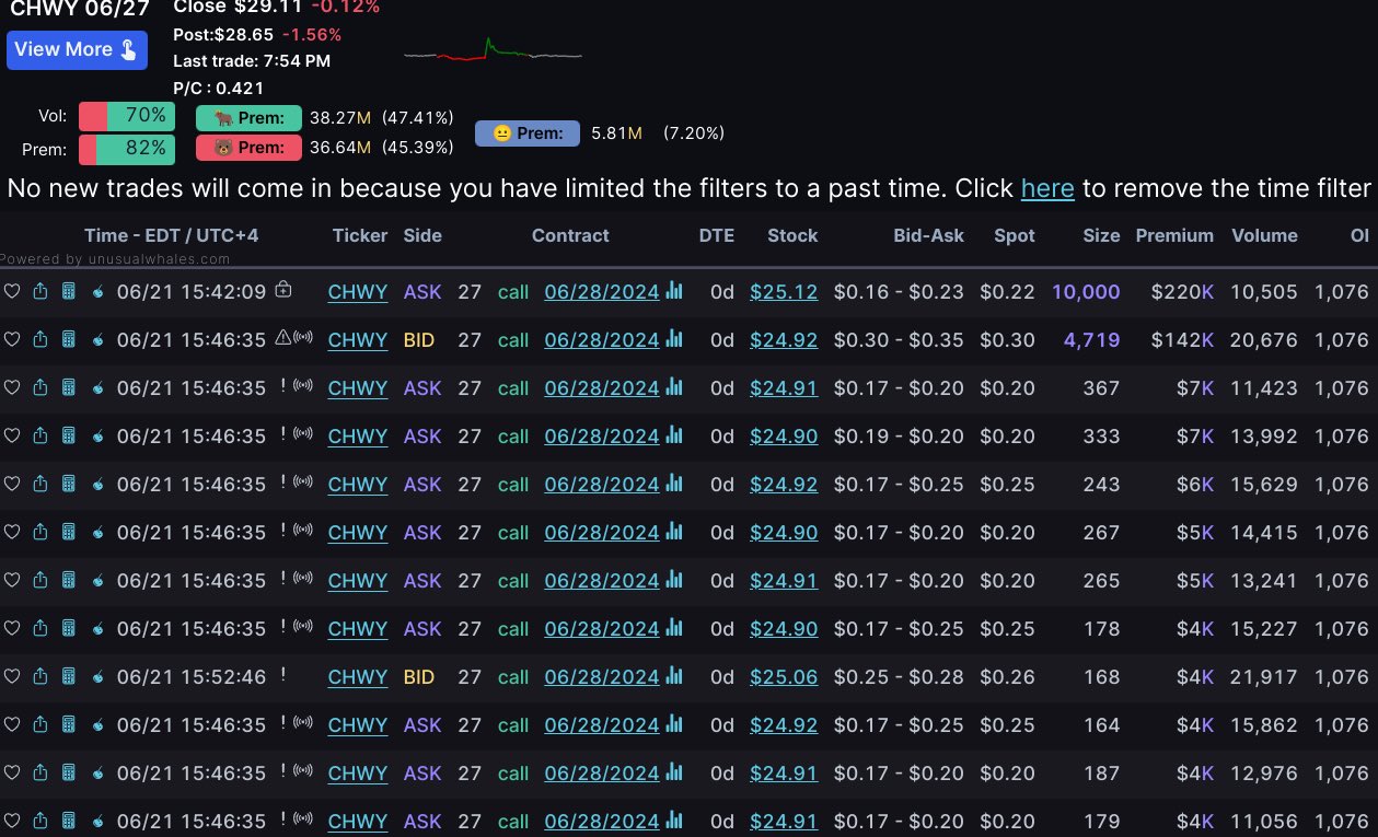 2. Someone immediately spends $1M on CHWY 6/28 35c