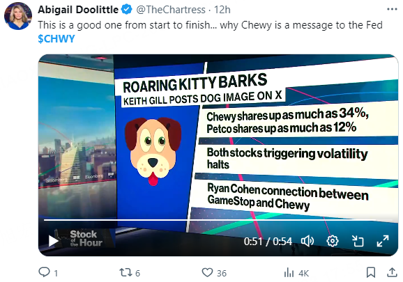 “No ones been understanding why $Chewy, Inc.(CHWY)$ been rising so hard every day from $22 or so and now this comes out lol. Largest shareholder gets to sell $500M in shares for the highest price possible utilizing half of chwy’s cash load. How and why they decided to do this and who knew about it to pump the stock to this level (about 2x where it was trading right before its last print) and why the company would still choose to go forward with this ill timed large buyback here is beyond me. Shareholders got fucked and now the company out of firepower. Still have their previous buyback but now will have just 500M cash and same in debt and trades for 30x FCF growing top line 5%… amazing” —HeadofMicroCapital@Crussian17