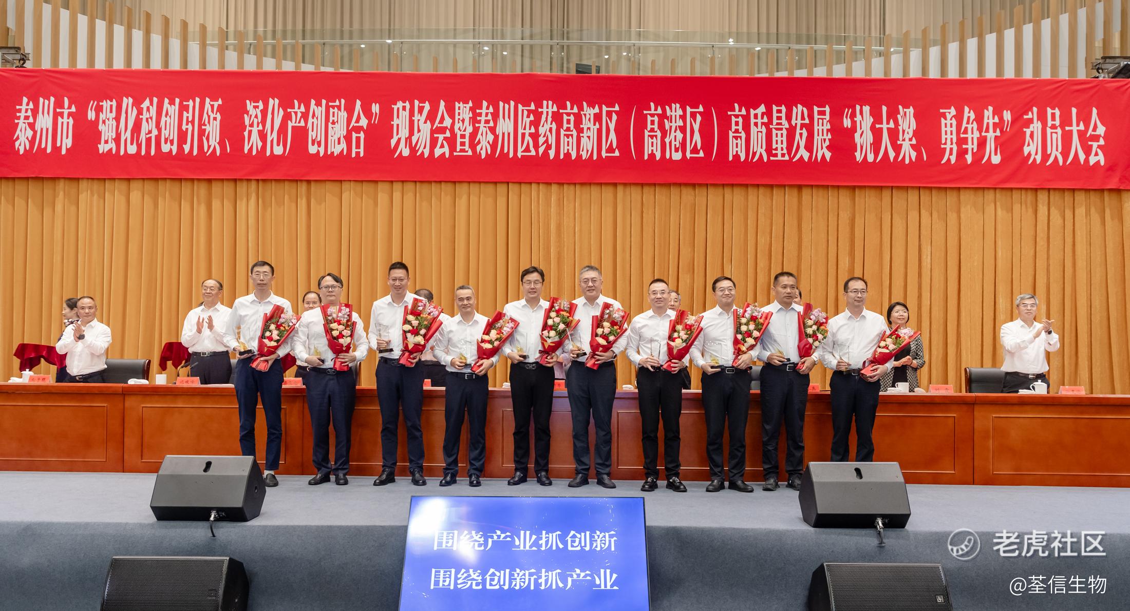 7月1日,泰州市“強化科創引領、深化產創融合”現場會暨醫藥高新區(高港區)高質量發展“挑大樑、勇爭先”動員大會隆重召開。大會公佈並表彰了泰州醫藥高新區15週年“十大創新之星”、“十大創業人物”。荃信生物創始人、董事長兼總經理裘霽宛先生憑藉其在生物醫藥行業的持續深耕探索及卓越的創業履歷,榮膺泰州醫藥高新區“十大創業人物”。
