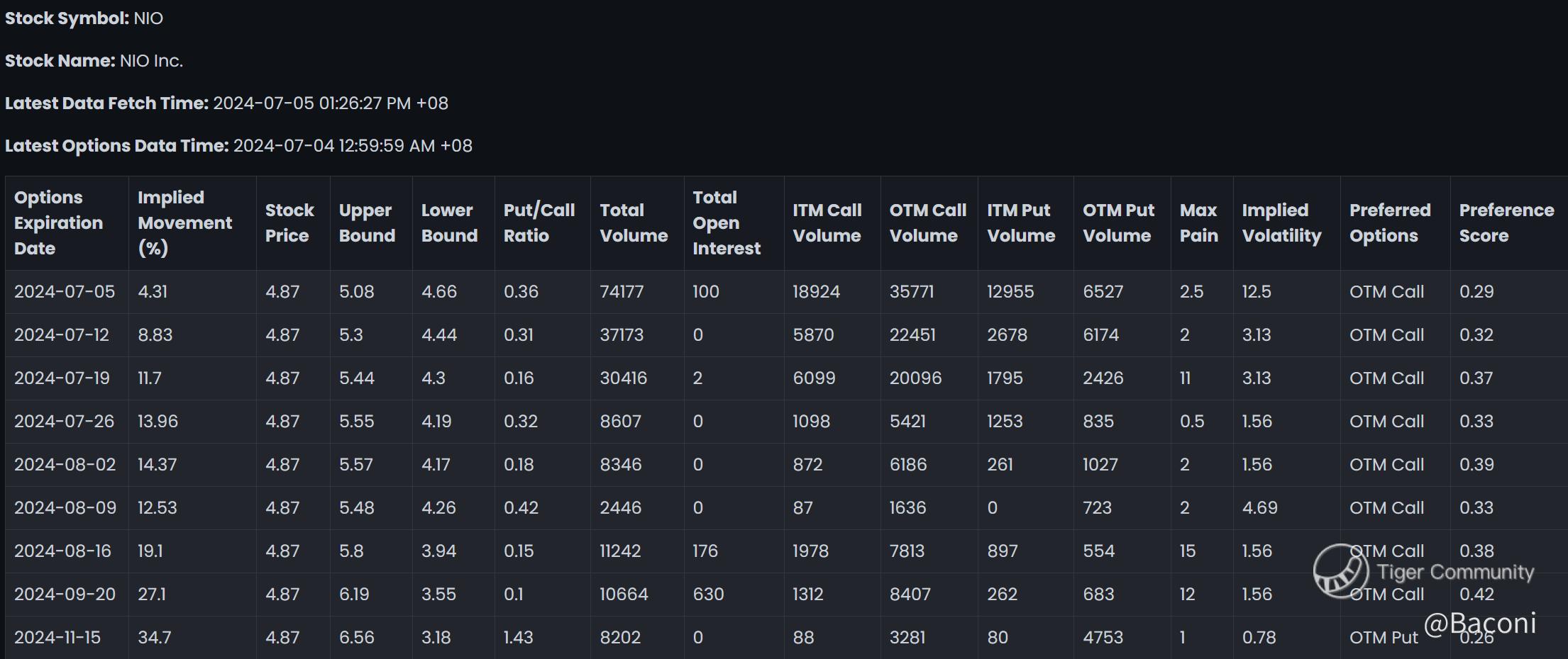 $NIO Inc.(NIO)$ , a prominent player in the premium intelligent electric vehicle (EV) market, has shown remarkable growth despite facing various market challenges. With the options expiry date of July 5, 2024, fast approaching, investors need to conduct a detailed analysis of the latest stock performance, options data, and market sentiment. This article delves into these aspects to provide a comprehensive view of NIO’s current standing and future potential.