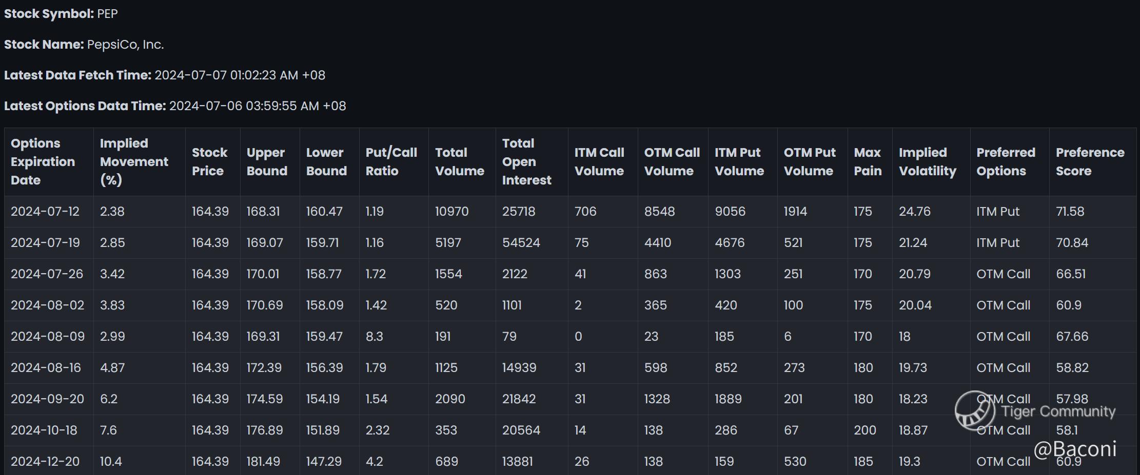 As $Pepsi(PEP)$ prepares to release its second-quarter earnings on July 11, 2024, investors and traders are keenly anticipating the results. With an options expiry date set for July 12, the data and projections surrounding PepsiCo's performance can provide significant insights into potential stock movements. This article delves into the expected earnings, market sentiment, and options data to offer a comprehensive analysis for stakeholders.