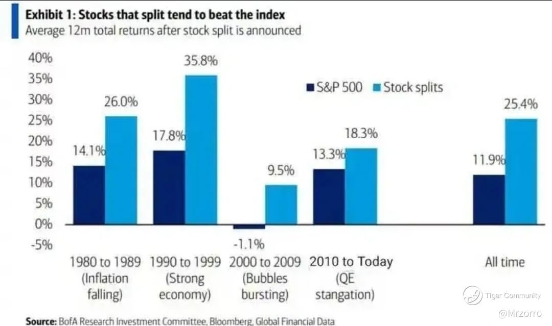 Historical data supports the idea that stock splits signal a bullish outlook.