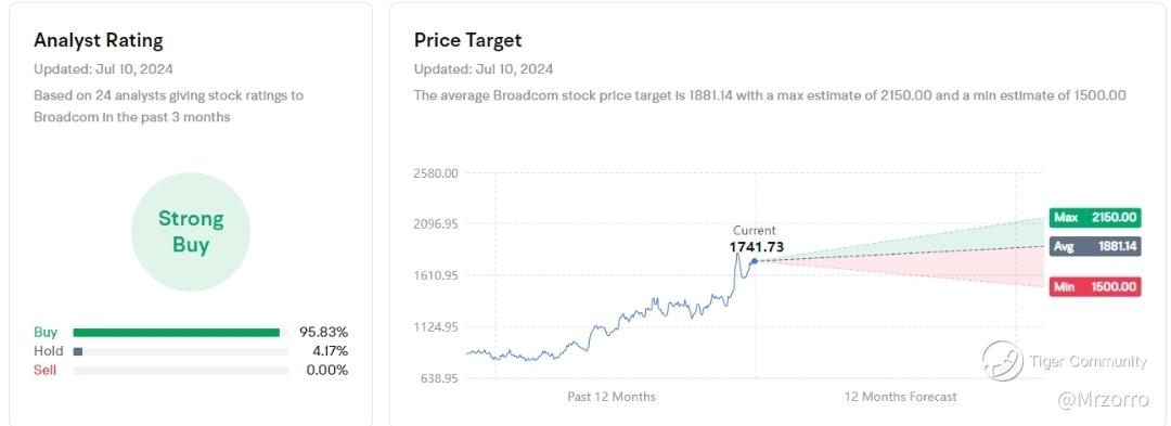 Additionally, several financial institutions have also increased their target prices for Broadcom. By accessing Stocks > Company > Analyst Ratings on moomoo, you can see that the average target price for $Broadcom(AVGO.US)$ is $1,881, suggesting a potential upside of about 8% from current levels.
