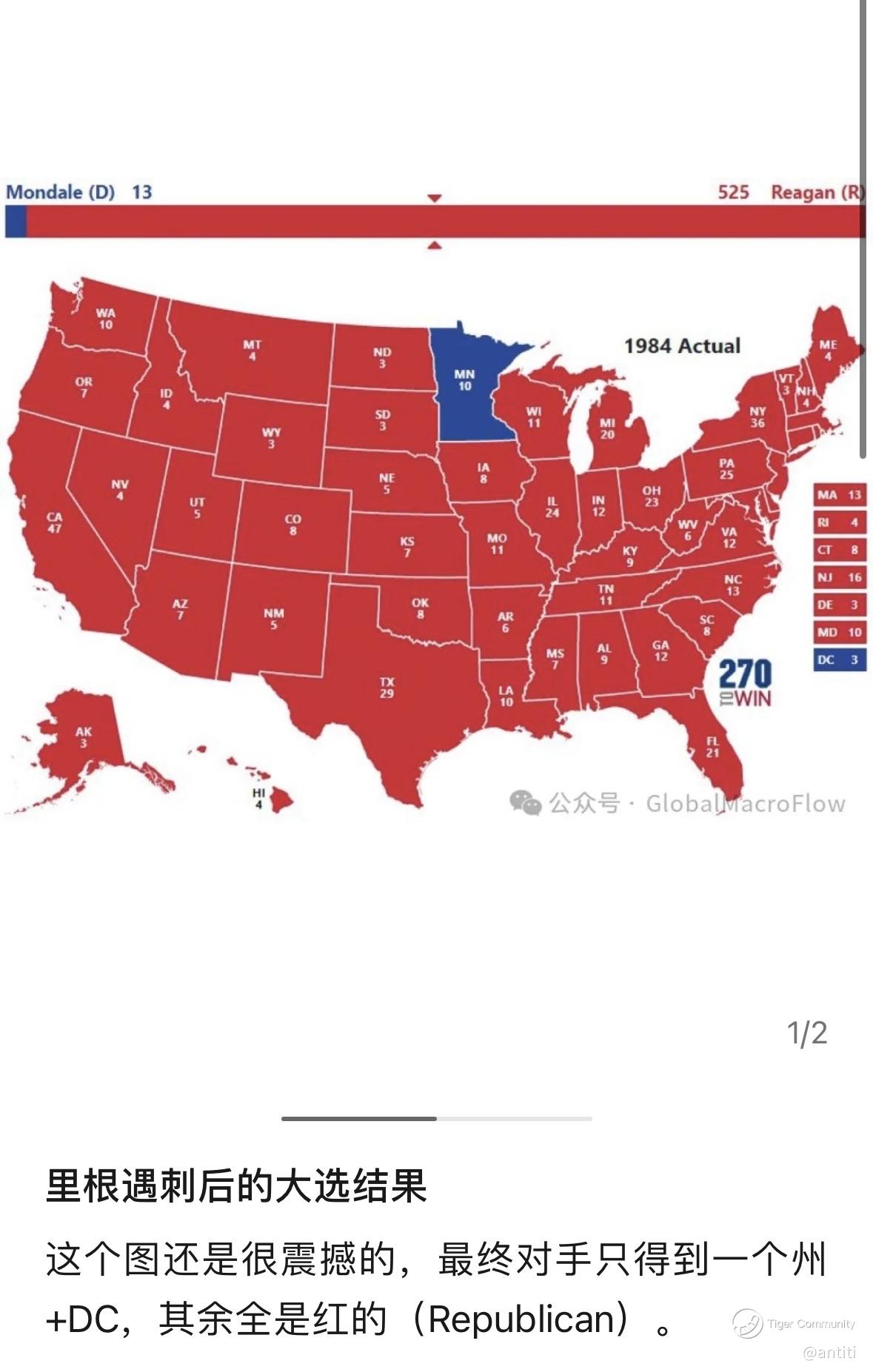 $Trump Media & Technology(DJT)$ After Reagan's assassination attempt, in the final election results, his opponent only won one state while the rest were red (Republican).