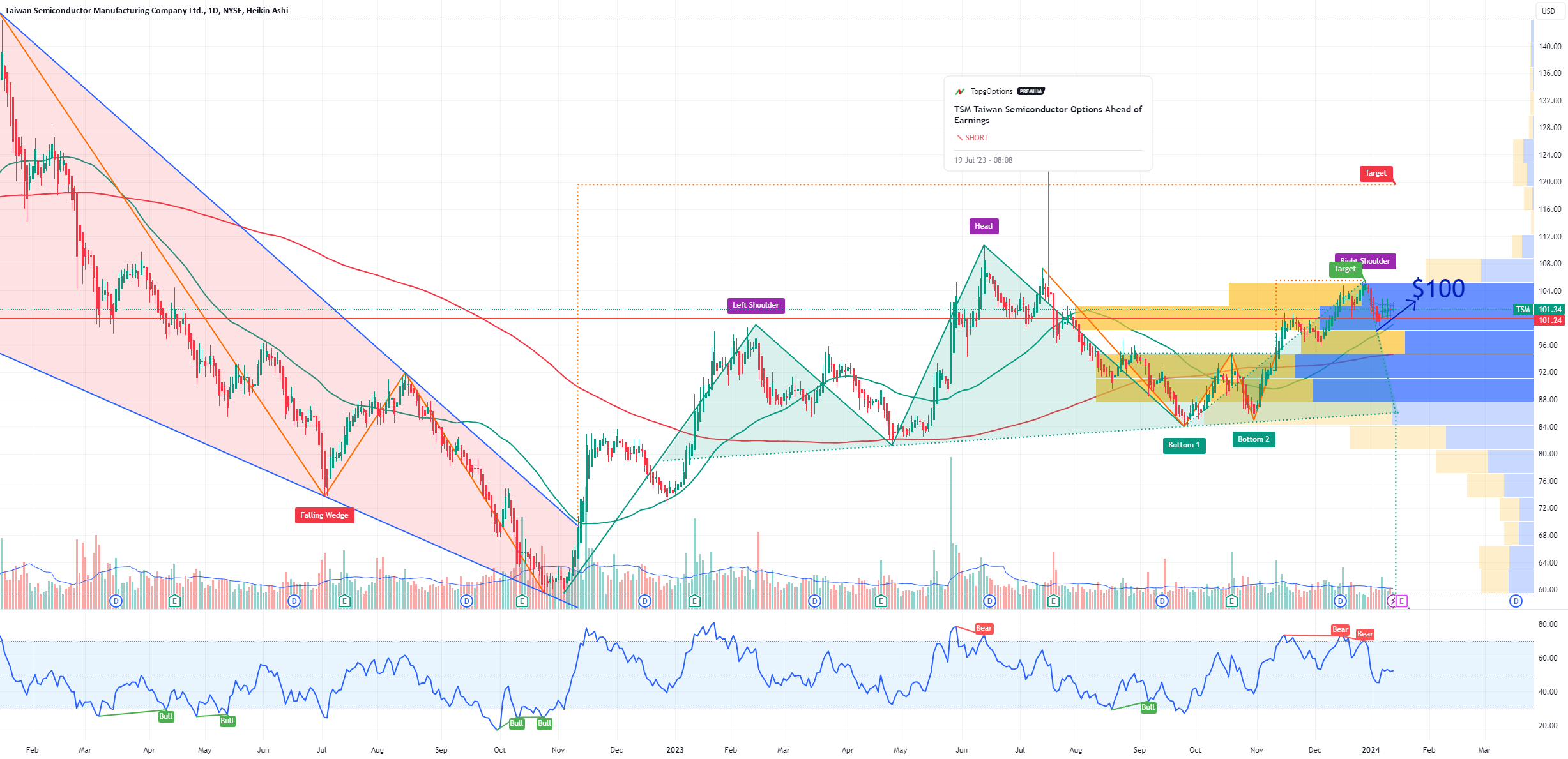 $Taiwan Semiconductor Manufacturing(TSM)$ Now analyzing the options chain and the chart patterns of TSM Taiwan Semiconductor prior to the earnings report this week,