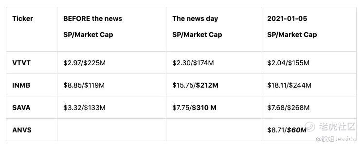 我注意到,這三家公司(VTVT,INMB,SAVA)在進行AD審判前的市值均超過1億美元,而ANVS的當前市值僅爲6000萬美元(流通股非常少,爲689.2萬股)。