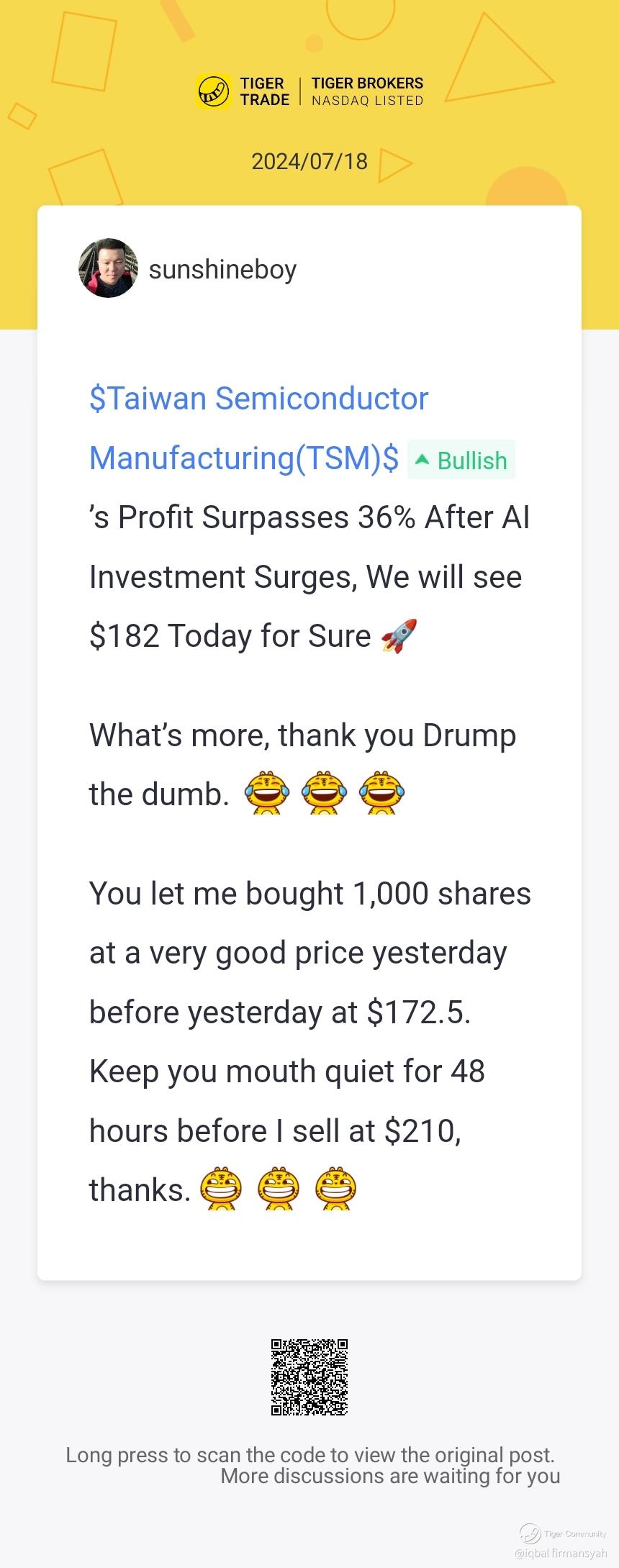 Disclaimer: Investing carries risk. This is not financial advice. The above content should not be regarded as an offer, recommendation, or solicitation on acquiring or disposing of any financial products, any associated discussions, comments, or posts by author or other users should not be considered as such either. It is solely for general information purpose only, which does not consider your own investment objectives, financial situations or needs. TTM assumes no responsibility or warranty for the accuracy and completeness of the information, investors should do their own research and may seek professional advice before investing.