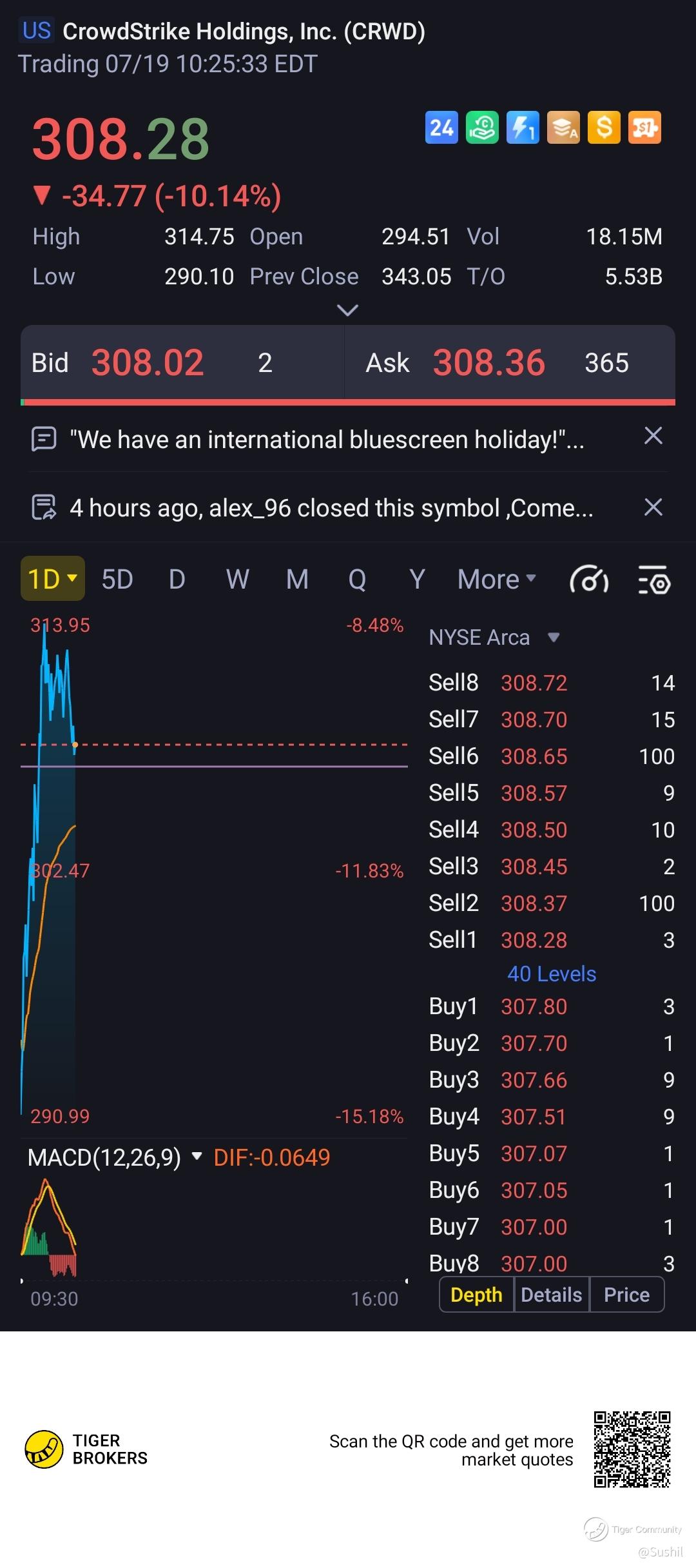 $CrowdStrike Holdings, Inc.(CRWD)$ its a buy now. The impact is overestimated. These software licenses are on recurring revenue models and sticky. Even ifnthey pay some compensation, the business will not be materially affected. Dive in at 300 and watch it soar to 360.