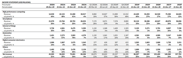 In addition to outsized HPC growth in recent quarters, TSM is also benefitting from an emerging cyclical recovery in consumer end-markets like PCs and smartphones. Admittedly, the recovery has been slower than expected since bottoming out in late 2023: