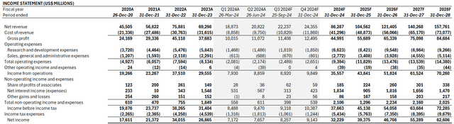 TSM’s current valuation has yet to price in the upper range of its raised guidance, which, in our opinion, is likely to get realized given robust AI-driven demand trends and additive recovery tailwinds in consumer end-markets. This will also be key to partially offsetting the geopolitical risk overhang on the stock’s multiple. The favorable end-market dynamics for TSM is further bolstered by the deep pockets observed in key customers spanning Nvidia and Apple. This accordingly leaves ample room for end-market absorption of price increases that will better reflect the unmatched value of TSM’s technology advantage, as well as external cost pass-throughs.