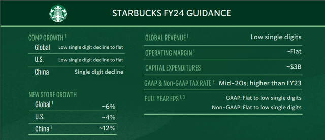 As a consequence of these disappointing results, Starbucks has lowered its expectations for 2024. They now predict low single-digit revenue growth, down from an earlier forecast of 7% to 10%. Similarly, they expect flat to low single-digit growth in same-store sales globally and in the U.S., a downgrade from the previous projection of 4% to 6%.