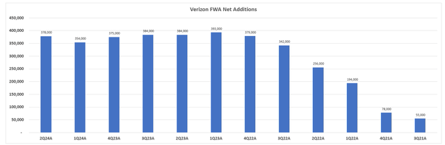 Persistent strength in wireless mobility also complements resilient demand for Verizon's broadband offerings, especially fixed wireless access ("FWA"). Specifically, Verizon reported 378,000 FWA net adds during Q2, up from 354,000 in Q1, with the revenue stream upholding its broadband segment subscriptions. Verizon's recent introduction of the myHome internet bundle plan is likely to further reinforce its broadband market share gains. The newly introduced home internet bundle is expected to imitate the success of its equivalent in wireless mobility - namely, myPlan - in amplifying ARPA growth at Verizon, and contributing to a higher premium revenue mix.