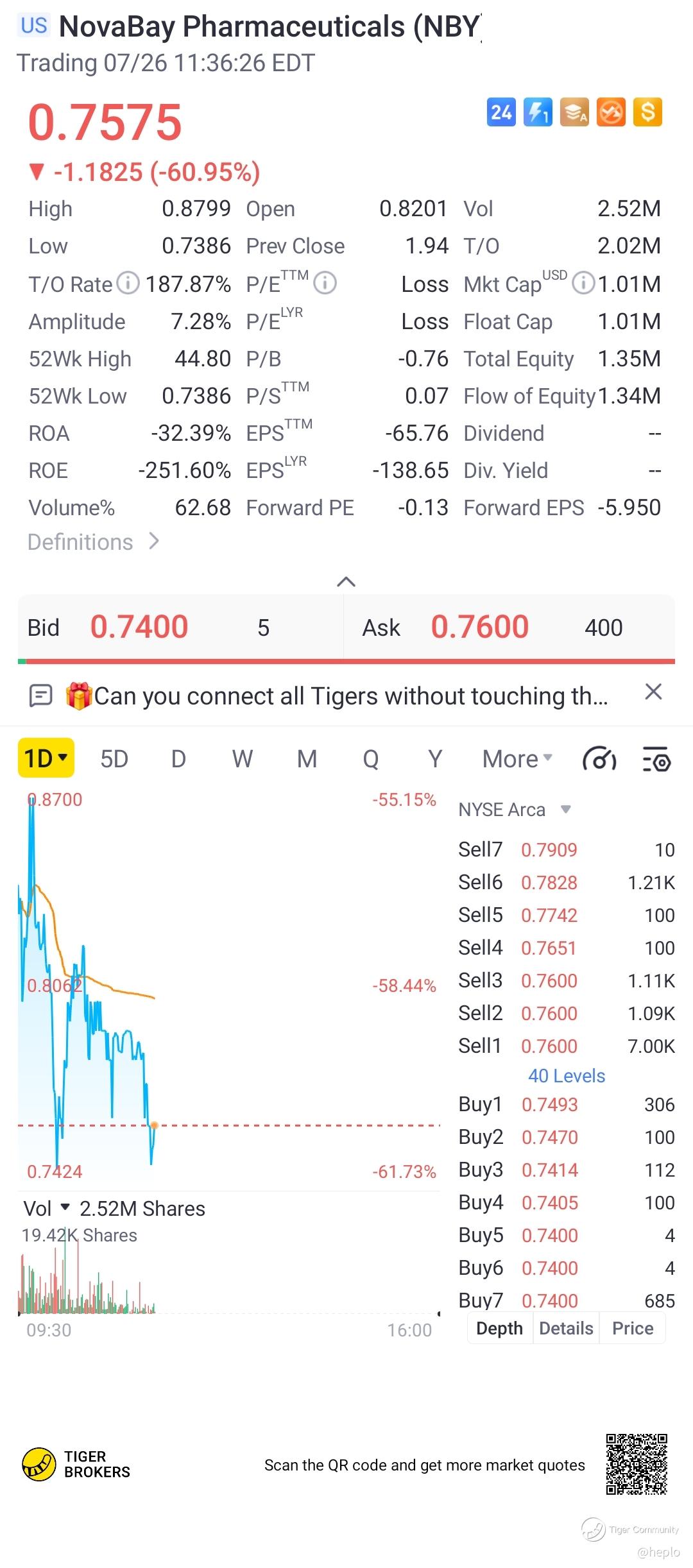$NovaBay Pharmaceuticals(NBY)$ looks good to invest when it goes further down a bit more