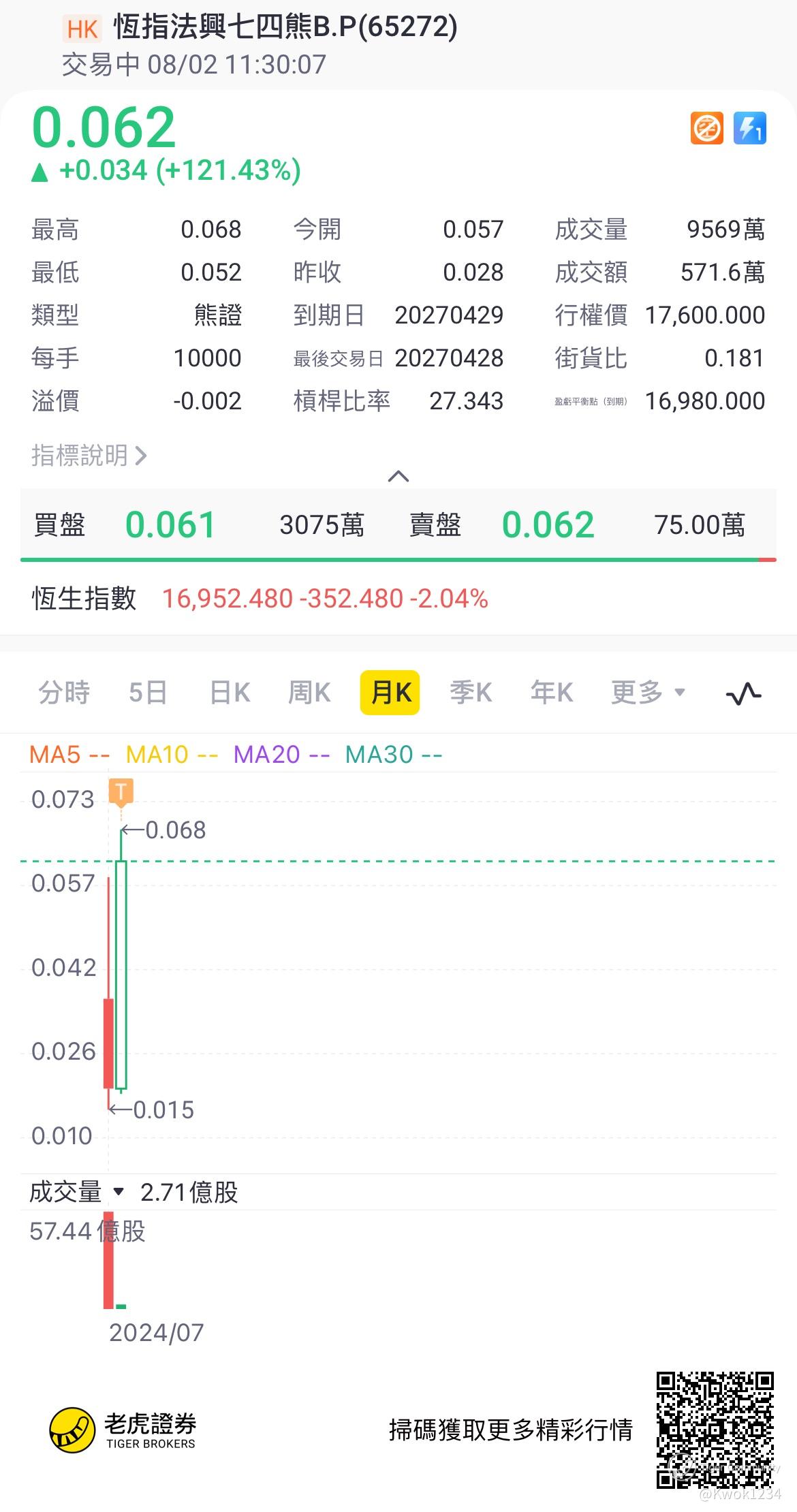 $恆指法興七四熊B.P(65272)$