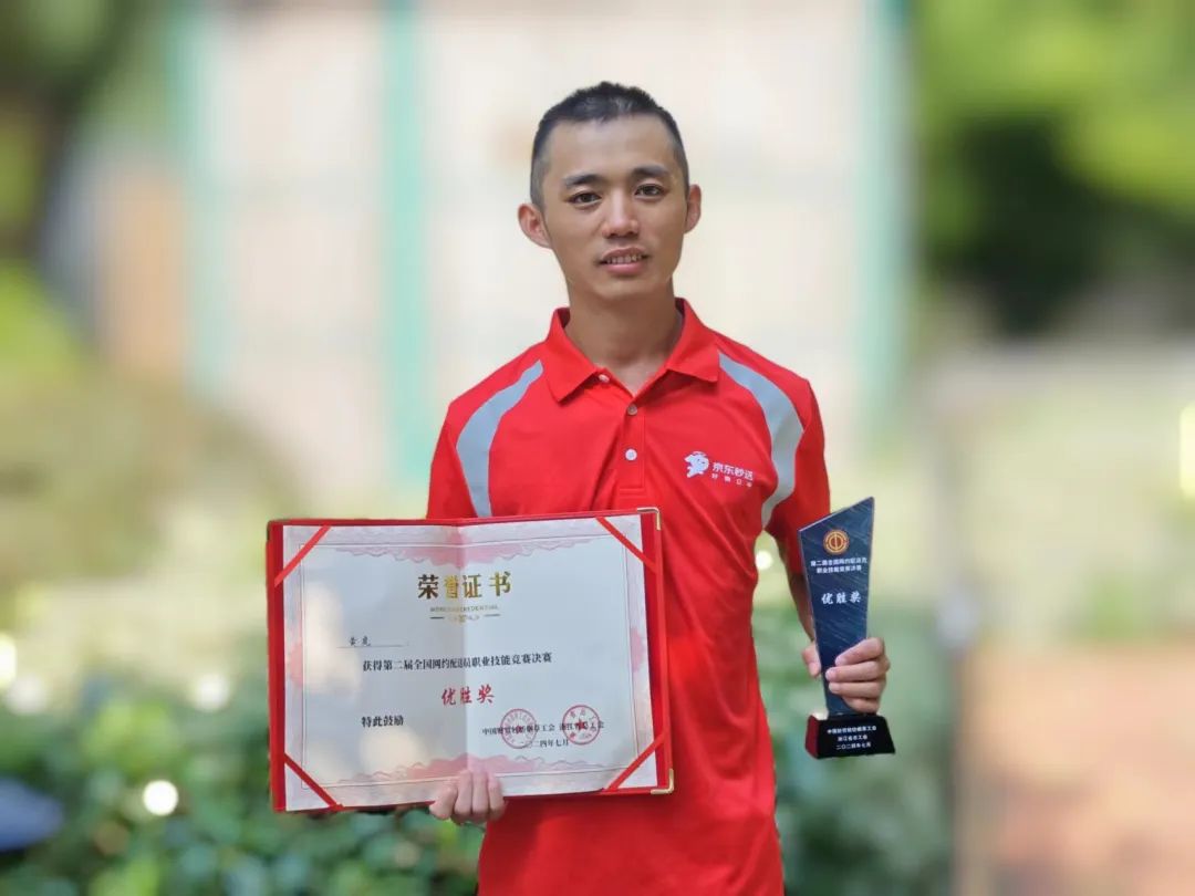 賽場上,來自全國31個省市自治區的7家知名平臺企業的94名騎手匯聚一堂,同臺競技。京東秒送騎手黃虎,憑藉其卓越的送單技巧及豐富的實戰經驗,在激烈的比拼中脫穎而出,斬獲了優勝獎。