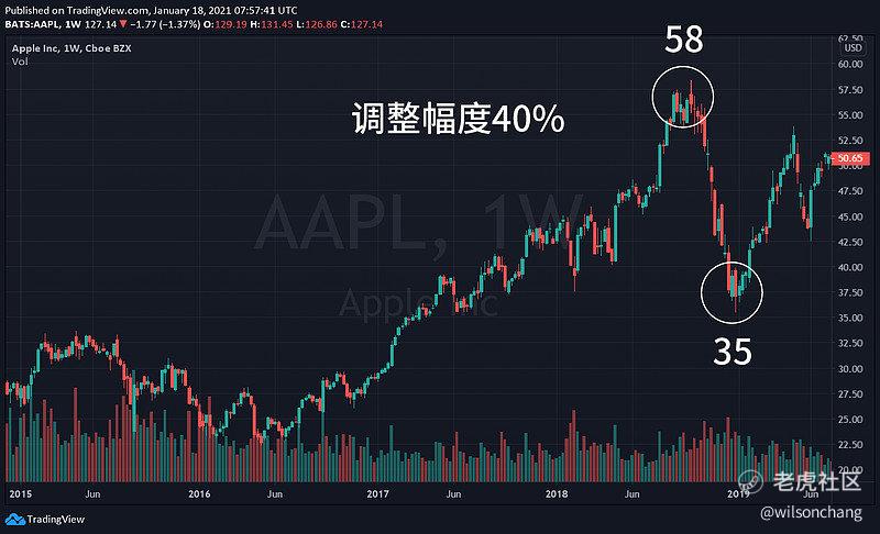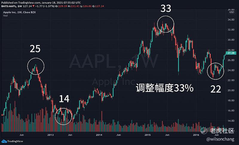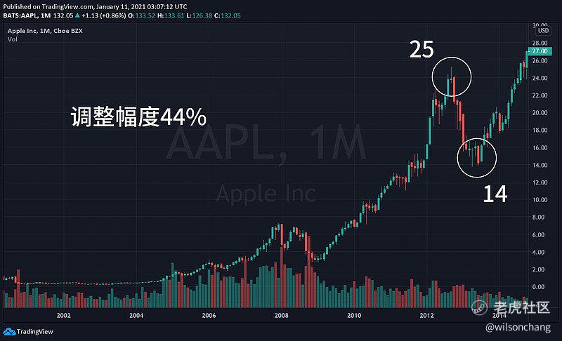 1、蘋果的股價,並不是不會修正,並且每次修正的幅度還不小!