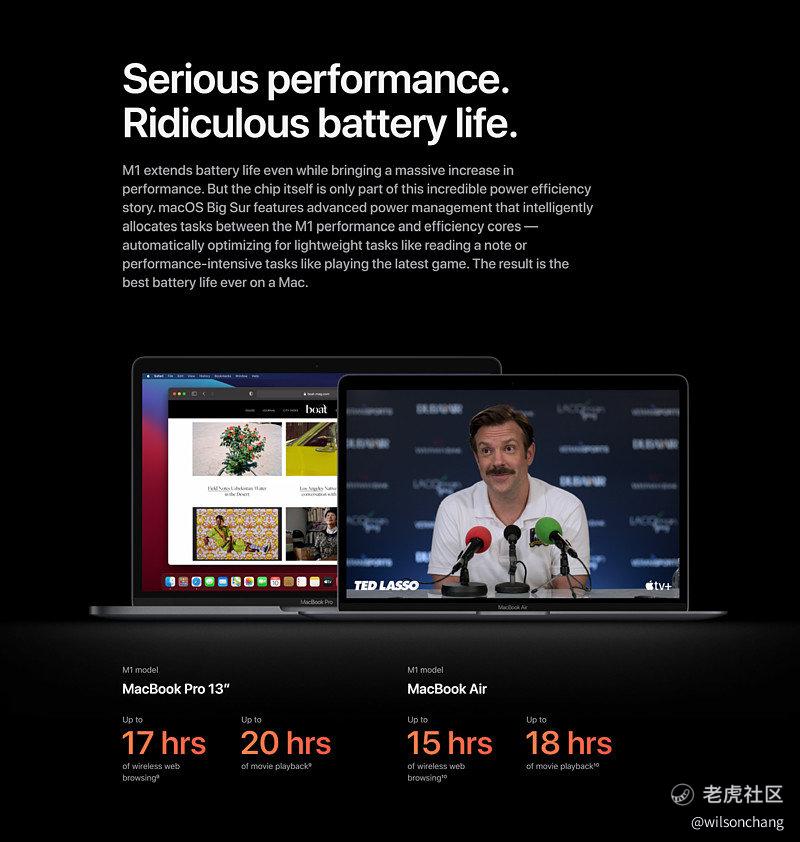 圖:蘋果公司官網截圖,M1芯片的續航能力
